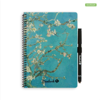 De A5 uitwisbare softcover Bambook heeft een kartonnen (FSC) omslag met de bekende print van de Amandelbloesem van Vincent van Gogh. Het notitieboek bestaat uit blanco pagina's afgewisseld met gelinieerde pagina's. Wordt geleverd inclusief de speciale uitwisbare stift met wis gum. Op elk boek staat een Nederlandstalige uitleg en verwijzing naar de speciale app om je documenten direct te bewaren of te versturen. Per verkocht boek wordt er1 boom geplant op Madagaskar i.s.m. Eden Projects! De boeken worden in Nederland gemaakt, op een sociale werkplaats.