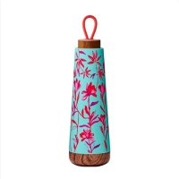 Prachtige thermos drinkfles! Inhoud 500 ml. Stijlvol door de houten dop met siliconen draagring. Vrolijk in de basiskleur turquoise met rood roze bloemen. - Dubbelwandige RVS binnenzijde - Houdt dranken tot 18 uur warm/12 uur koud - Ook geschikt voor koolzuurhoudende dranken - Met houten dop en siliconen draagring - BPA, Toxine en Ftalaat vrij - Handwas aanbevolen - Klimaat neutraal product
